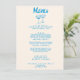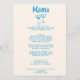 A colorful retro funky modern black and white wedding dinner menu. Which features chic template design of creamy milky background and Marseille blue hand written typography. With Hand drawn cocktail glasses . A Perfect and matching with the whole suite.