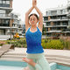 The tank material is very comfortable. I ordered a size small and it fits very well. I am on the petite side so the tank is a little on the long side but is easily tied back. It also covers any bra straps/bands well.