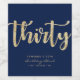 Minimalist 30th birthday dark blue and gold wine bottle label in modern, chic and elegant typography style. Featuring age "thirty" in sparkly gold. Customise with age, name, and year of birth.