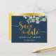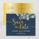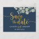 Modern Blue & Gold Eucalyptus Save the Date Postcard