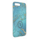 Modern Blue & Gold Marble Stone Monogram Uncommon iPhone Case