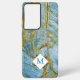 Modern Blue gold marble textured Monogram Samsung Galaxy Case