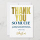 A striking blue and gold party thank you card. This special thank you card consists of bold and modern typography. Add a message for a custom birthday or retirement party gift thank you.