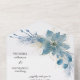 This All-in-One wedding invitation is designed to encapsulate the enchanting essence of winter with elegant blue and gold poinsettias that beautifully reflect the romance of your love story with the charm of the winter season. The All-in-One wedding invitations are both beautiful and practical by combining the wedding invitation with an easy to remove perforated RSVP postcard. They are also quick and easy to prepare for mailing. Simply address the invitation, fold the back flap and seal with the included clear stickers. Once your guests receive the pre-addressed invitation they simply tear off the perforated RSVP card and drop it in the mail.