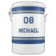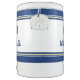 Create your own custom, personalized, modern, cool, stylish, chic, trendy, faux gold, navy blue and white racing stripes striped pattern design, stylish navy blue and white typography / font / script, monogrammed player name jersey number, 10-gallon fully insulated Igloo beverage ice cooler bucket, to keep cool on hot sunny days. Features pressure-fit lid, angled drip resistant spigot for easy dispensing, and reinforced handles for strength and durability. Designed to maintain ice for up to 3 days at 90°F, perfect for outdoors, sports, parties, camping, jobsite, or to drench your coach at the next game. Simply type in your name / kids name / player name and player jersey number, to customize. Makes a great gift for birthday, graduation, fathers day, christmas, holidays, back to school, new years, and more, for your loved ones, kids, boyfriend, girlfriend, mom, dad, son, daughter, sister, brother, husband, wife, grandparents, teams, club, teammates, athletes, player, coach, sportsmen, sports lovers, friends and family.