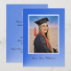 A unique card with a modern blue, gradient color scheme. Similar blue background on the back of the card containing details. Suitable for a high school or college graduation. The photo and all text are easily changed with the template. Selecting “Personalize this design” offers you several edit options to easily change the text (wording, plus type font, color, size, position) and to edit the design elements. You may also want to scroll down to the section “Transfer design to a product” for a few suggestions about other items this design can be used on.