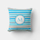 Modern Blue Gray Stripes Monogram Throw Pillow