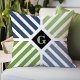 Modern Blue Green Stripes Monogram Initial Throw Pillow