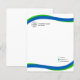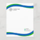 This modern classic personalized letterhead features dynamic wave accents in bold blue and vibrant green, creating an energetic yet professional look. The flowing curves at the top and bottom add visual movement while framing the central white space perfectly for your content. A small contact icon section at the bottom reinforces practicality without cluttering the design, making it ideal for business documents, proposals, and official correspondence.