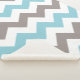 Modern chevron pattern sherpa blanket in blue, white, and grey.