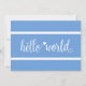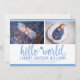 A blue hand-lettered hello world photo birth announcement postcard to welcome your new arrival. Send out this card to friends and family so they can see your new bundle of joy.
