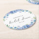 Modern Blue Hydrangea Floral Bridal Shower Round Paper Coaster