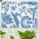Modern Blue Jacobean Floral Rabbit Bird Pattern Kitchen Towel