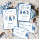 This "Blue Jean Baby Baby Shower item blends modern charm with rustic simplicity, making it the perfect choice for a stylish yet cozy celebration. Designed with a denim-inspired watercolor background, this invitation captures the timeless appeal of blue jeans, while adorable baby clothes accents, add a heartwarming touch. Whether you're planning a casual backyard gathering, a farmhouse-style brunch, or a trendy denim-themed party, this item sets the stage for a laid-back yet memorable baby shower, celebrating the sweet arrival of a little boy in style. Matching items are available.