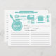 Contemporary Bridal Shower Kitchen Recipe Cards featuring a stylish hand lettered typography script font with a frying pan, whisk, spatula, hand mixer, pot, rolling pins & utensils. The front of our recipe card offers room for a recipe title, servings, prep time & total time and ingredients space. Flip our recipe card view directions. Visit our shop for matching bridal shower invitations Available in our shop in a large assortment of popular wedding shower colors. Perfect bridal shower invitation insert for a stock the kitchen bridal shower.