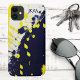 Introducing this personalized blue and maize abstract paint splatter cell phone case, a stylish and unique accessory that will protect your phone while showcasing your individuality. This eye-catching case is perfect for those who want to add a touch of personalization and modern flair to their everyday carry.