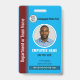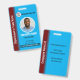 This modern employee ID badge features a clean and professional design in a vibrant blue hue. It's perfect for companies looking to enhance their security and identification protocols with a stylish touch. The layout includes space for a company logo, employee photo, name, job title, ID number, and an optional barcode, ensuring all essential information is readily accessible. The vertical maroon stripe adds a sophisticated contrast and can be used to denote departments or teams. The reverse side offers a clear space for return information, making it ideal for fostering a sense of responsibility among employees. Elevate your workplace identification with this sleek and functional badge.