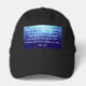 Personalize this modern blue nebula hat. John 3:16 the famous Christian Bible verse is printed on the top. All the text is editable. This dark blue design with clear simple white script can be edited for your purposes. I created this unique design with white blue nebula fog. It looks cool on the dark blue background.