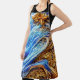Beautiful professional artwork of a blue ocean beach waves with a gold starfish and swirl ornate.