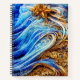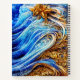 Beautiful professional artwork of a blue ocean beach waves with a gold starfish and swirl ornate.