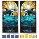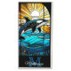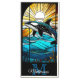 Monogrammed with Family Name, Green, Blue, and Black Modern Orca Whale in the ocean. Beautiful Sealife Scene in Faux Stained Glass Design. If you're having an ocean, nautical, tropical, or luau-themed pool party, this design is perfect for the occasion. Also, Perfect for a beach house or ocean area home.