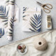 Modern Blue Palm Leaves Gold Strokes White Design Wrapping Paper