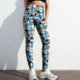 Modern Blue Palm Tropical Checked Abstract Pattern Leggings