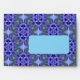 This blue patterned envelope is printed inside and out with a modern kaleidoscope print and has a customizable return address printed on the outer flap on the back. The front has a plain blue area to write the recipient's address on.