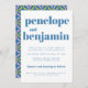 Modern Blue Pattern Retro Typography Wedding Invitation