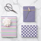 Modern Blue, Pink, Green Stripes, Blue Checkered Wrapping Paper Sheets