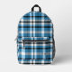 Modern Blue Plaid Monogram Initials Printed Backpack