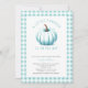 Modern Blue Pumpkin Gingham Plaid Boy Baby Shower Invitation