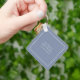 The key chain is made of metal and really sturdy. The flower design is really cheerful. The logo and colors are clear and crisp!