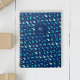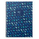 Personalized notebook with custom initial and name featuring captivating rain pattern with water drops in various sizes, each rendered in blue, aquamarine, turquoise and teal. Raindrops of different sizes cascade from the top of the canvas, creating a dynamic and rhythmic pattern. Modern droplets in shades of blue intermingle, creating a harmonious dance that mirrors the natural beauty of a rainfall or waterfall. It can be personalized with initial and name or any other title.