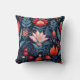 Modern Blue Red Floral Dark Pattern Decor Throw Pillow