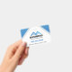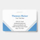 This professional and modern real estate badge features a striking blue roof house logo, perfect for real estate agents, brokers, or property managers. The clean white background is accented with sharp blue geometric shapes, creating a sophisticated and trustworthy appearance. It includes fields for name, title, contact number, email, website, and address, making it a complete professional identifier. This badge is ideal for showcasing your brand and contact information at industry events, client meetings, or for everyday use in your real estate business.