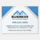 This modern blue roof house logo real estate yard sign is perfect for any real estate professional looking to make a statement. The clean, geometric design features a striking blue roof house logo, accented with crisp white and subtle grey lines, creating a professional and contemporary feel. Below the logo, bold text displays your business name and tagline, followed by your contact information including phone number, email, website, and address. This eye-catching sign is designed to attract attention and effectively communicate your brand identity to potential clients. Make a lasting impression with this sophisticated and professional real estate yard sign.
