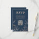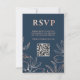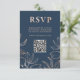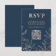 Modern Blue & Rose Gold Foliage RSVP QR Wedding Card