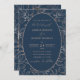 Modern Blue & Rose Gold Foliage Wedding Invitation