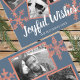 A simple modern blue rustic design featuring faux redwood snowflakes and your 4 photo collage makes for unique custom Christmas photo postcards. From personal greetings to corporate business mailings, these custom holiday postcards will bring the cheer. The new modern rustic is sleek and sophisticated with accents of natural materials while crisp white typography across the bottom of the soft blue cards proclaims JOYFUL WISHES in a chunky script font with space for your name and year below. Postcards reverse to reveal a text template in blue for your names and custom holiday greeting accented by a single rustic redwood snowflake in the upper left hand corner and a thin border of matching blue around the edges. Choose four of your favorite photos to upload and add to the simulated redwood frames for beautiful personalized Christmas postcards. Accented by a scatter of 5 matching snowflakes, these new modern blue rustic holiday postcards with your family pictures is a lovely way to send the holiday joy. Browse my shop for matching Modern Blue Rustic items that coordinate with this stylish multi photo postcard.