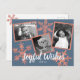 A simple modern blue rustic design featuring faux wood snowflakes and your 3 photo collage makes for unique custom Christmas postcards. For personal greetings or corporate business mailings, these holiday postcards will bring the cheer. The new modern rustic is sleek and sophisticated with accents of natural materials while crisp white typography across the bottom of the card proclaims JOYFUL WISHES with space for the year below. Cards reverse to classic white with a text template in blue for your names and custom holiday greeting accented by a single rustic snowflake in the upper left hand corner. Choose three of your favorite photos to upload and add to the simulated wood frames for a beautiful personalized Christmas postcard. Accented by a scatter of matching snowflakes, front and back, this new modern blue rustic postcard with your family photographs is a lovely way to send the holiday joy. Browse my shop for matching Modern Blue Rustic items that coordinate with this stylish photo postcard.