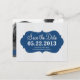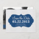 This Save the Date postcard is perfect for your wedding announcement. It features a modern design with a grey pattern background. On top is a trendy shape with all your date information. On the back is room for you to add your own photo and names!