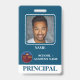 Professional school Principal employee badge designed for schools, colleges and academies. Simply upload your school logo, update school name, principal's name, title, school contact information in the back and choose a background color that matches your school colors.