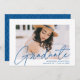 Modern Blue Script Photo Graduation Party Invitation