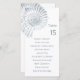 A fresh approach to a traditional seating chart. List your guest's names on this easy to read individual table chart. This shell design is ideal for a nautical or beach themed wedding or reception. The modern light colors make a popular choice.