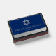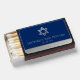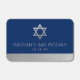 Elegant modern blue and faux silver classic bar mitzvah matchbox favors with custom name, date and Star of David design and a faux silver stripe.