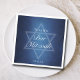 Beautiful deep shades of dark blue create a texture like water on this formal Bar Mitzvah party napkin. Elegant white minimalist script on party decor with your son's name on the subtle Star of David to celebrate your Jewish son's coming of age.