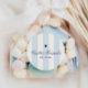 Modern Blue Stripe Heart Valentine Baby Shower Classic Round Sticker