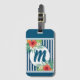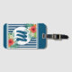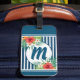 Modern Blue Stripes and Flowers Monogram Luggage Tag