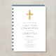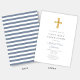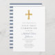 Modern Blue Stripes Cross Boy First Communion Invitation